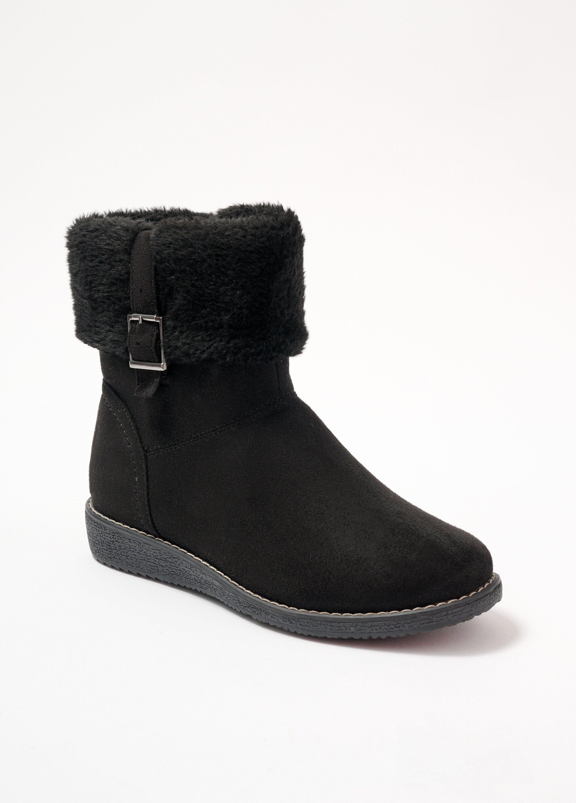 Vegan faux-fur cuff boots comfort width  Black